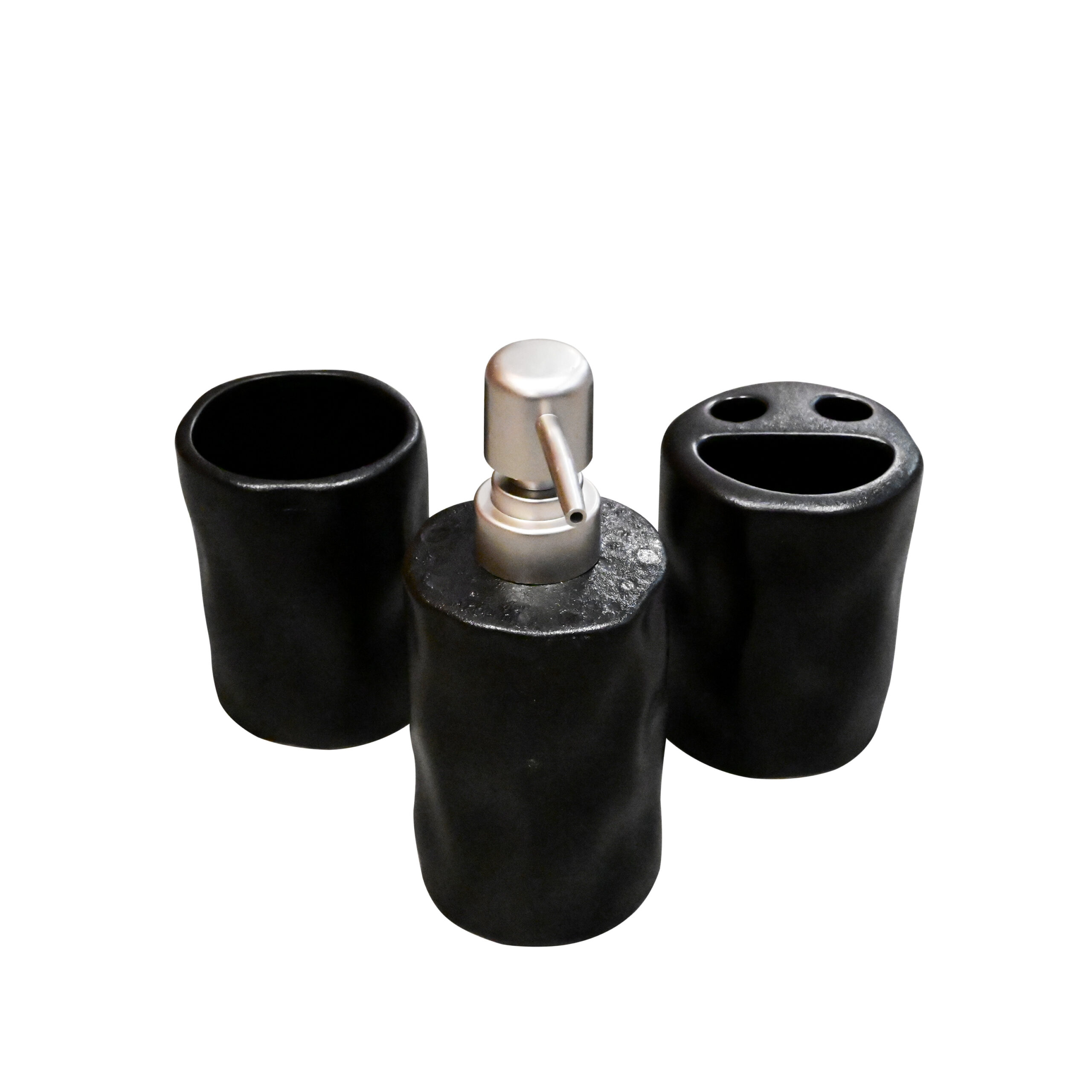 דיספנסר מרובע לסבון נוזלי כוס מרובעת למברשות שיניים שחור/לבן עם לוחית מתכת – B201043-4A