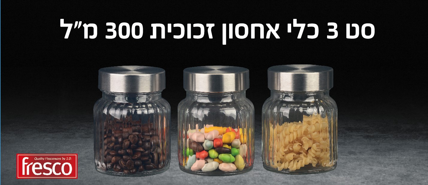 סט 3 צנצנות זכוכית עם מכסה נירוסטה 300 מ"ל באריזת מתנה דגם H2316-0305